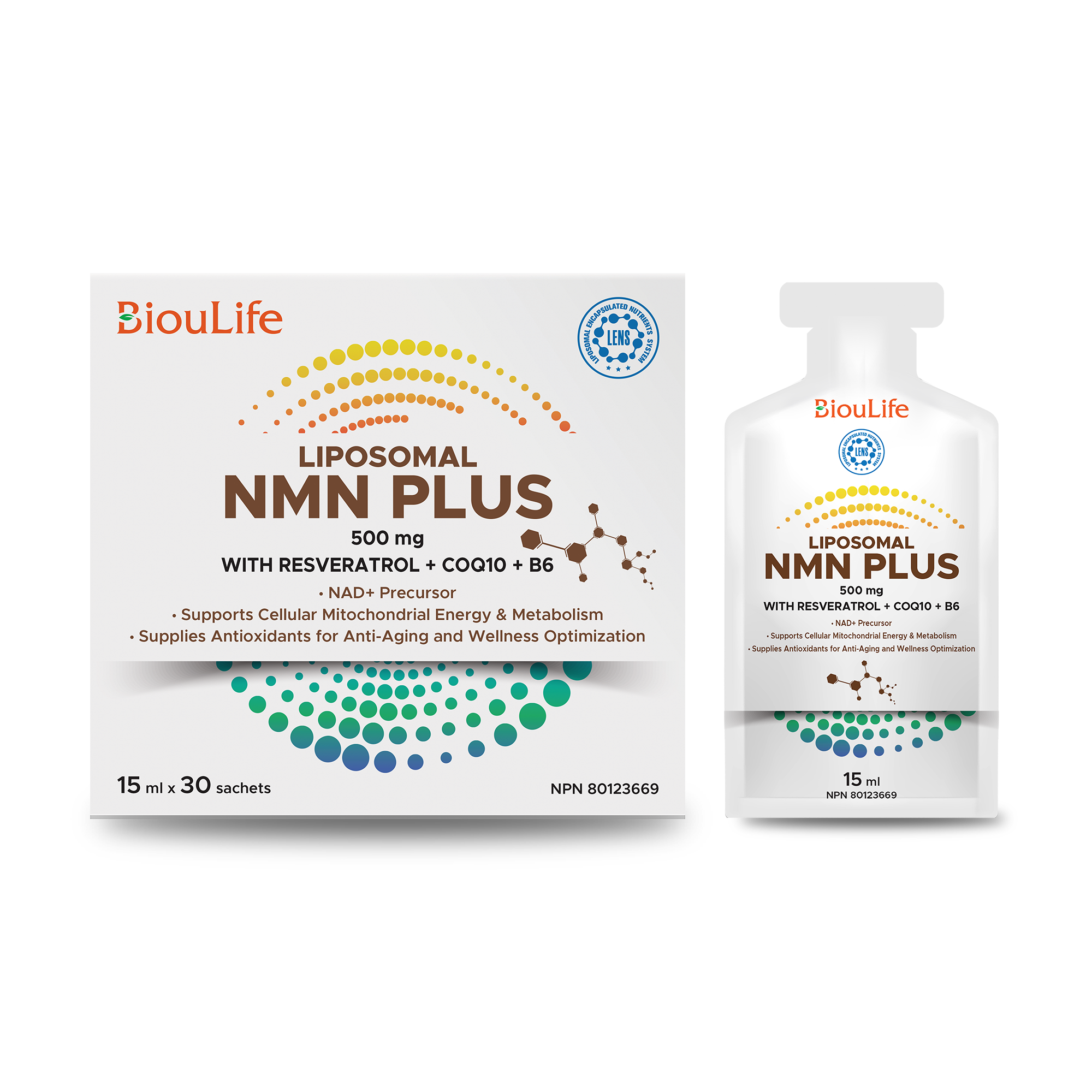 Liposomal Encapsulated Nutrition System is an innovative and superior technology designed to enhance the body's absorption of different nutrients and protect them from damage by different enzymes and gastric acid while being delivered to specific cells. In addition to NMN, this product also contains Resveratrol, Coenzyme Q10, and Vitamin B6 to ensure that brain health, skin health, heart health, and cognitive performance are fully supported. They also work together to reduce the number of free radicals and reduce oxidative stress in the body. NMN acts as a precursor to the essential vitamin B3 metabolite NAD+. In other words, the body converts NMN to NAD+ within its cells. NAD+ plays an important role in many functions related to metabolism and is thought to be important for processes associated with healthy aging. By supporting NAD+ production, NMN helps support cellular health, mitochondrial function, and energy